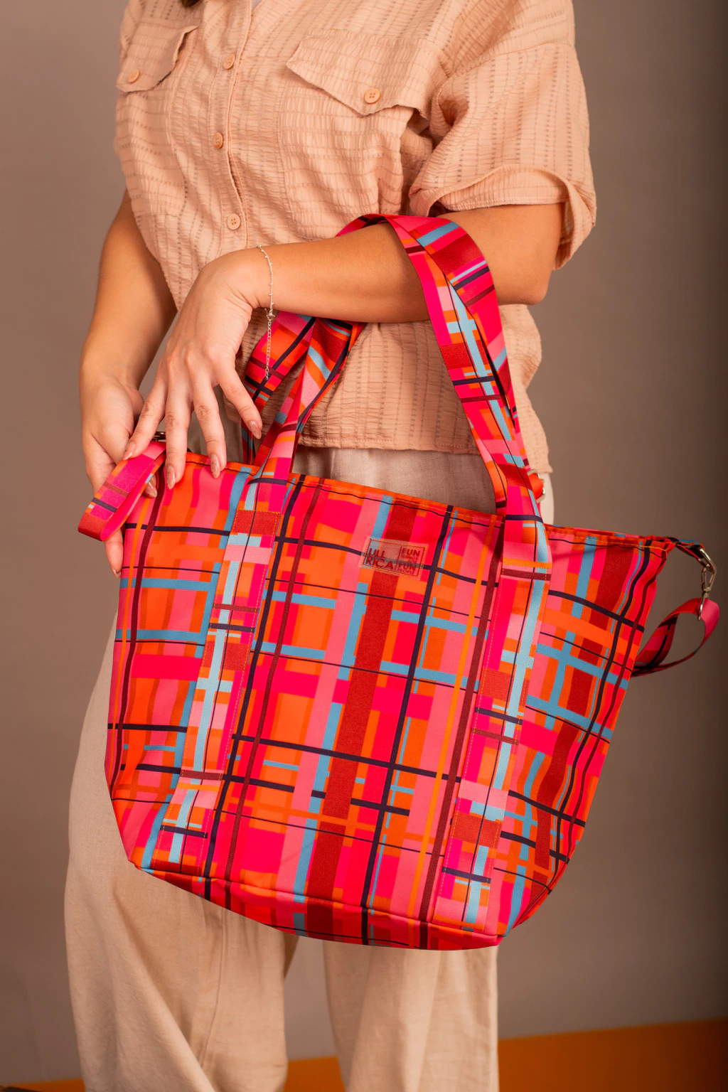 Bolso Tote confeccionado en cordura sublimada, diseños exclusivos de la marca, posee bolsillo interior, cierres y deslizador con llavero. Cuenta con pasadores, reguladores y mosquetones de alta calidad en niquel. Cintas tipo bag y cinta morral, para llevarlo de la forma que mas te guste!