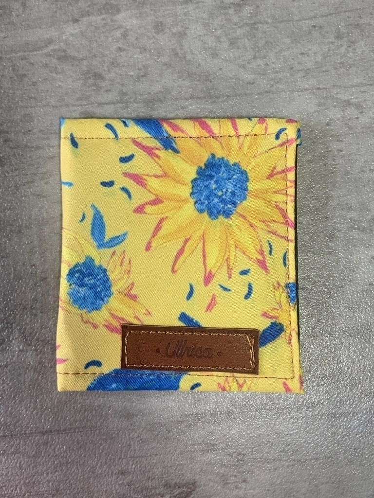 Tarjetero confeccionado en sarga impermeable y detalle de la marca en cuero.
